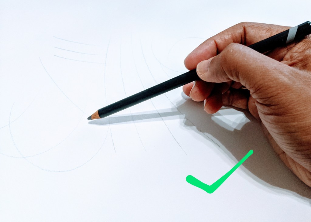 For a greater control and support and ability to draw a clean underdrawing we should adopt a specific way of holding and supporting the pencil. following pictures will explain how to have a optimum combination. These are just some general guidance but it might differ from person to person based on their preference.