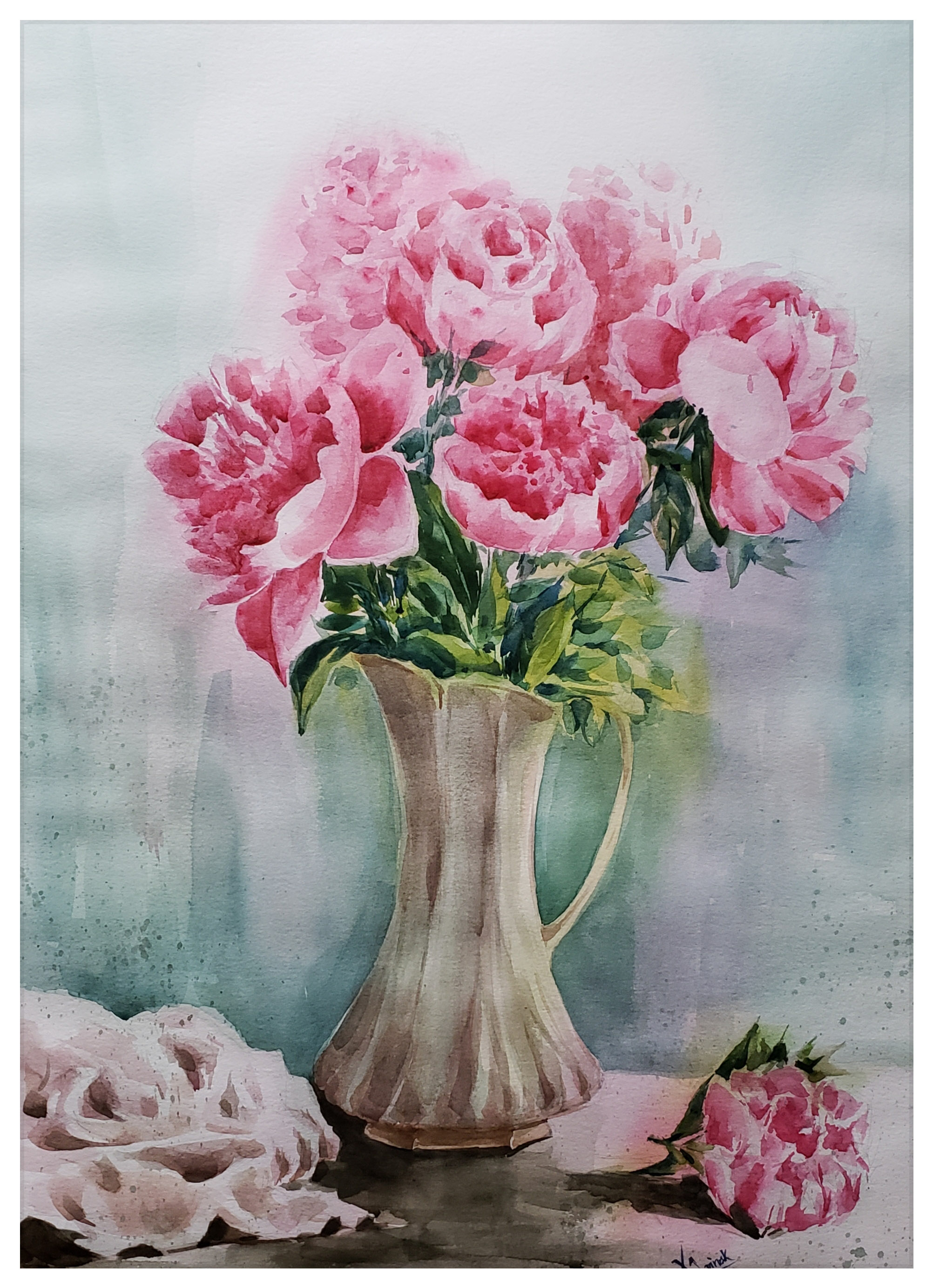 Aspire” is collection of artworks in water color about vibrant flowers and garden subjects.